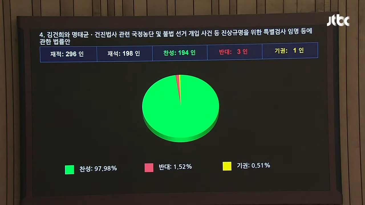 6월 5일 본회의에서 민주당, 조국혁신당, 정의당 등 야당 주도로 통과되었고, 표결 결과는 다음과 같습니다: